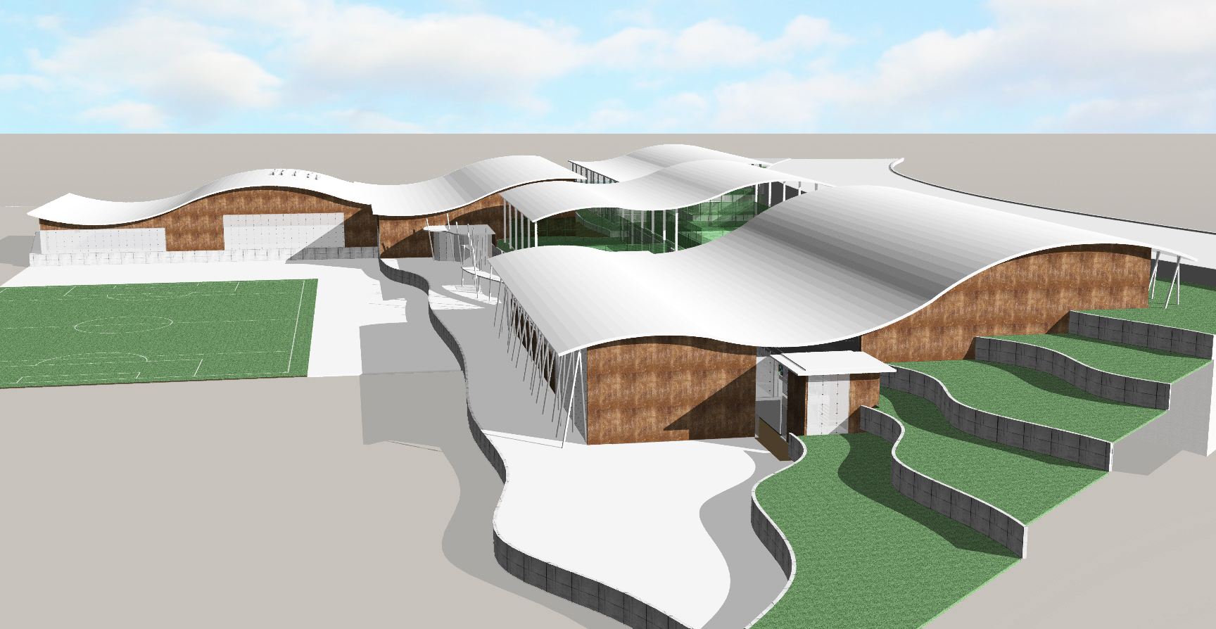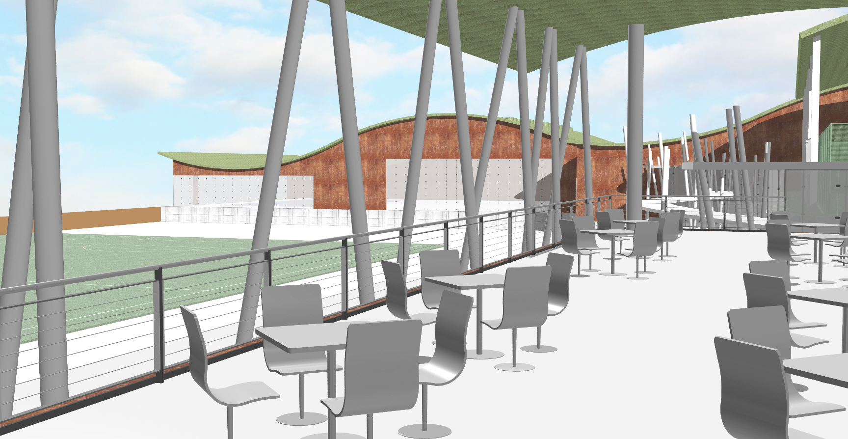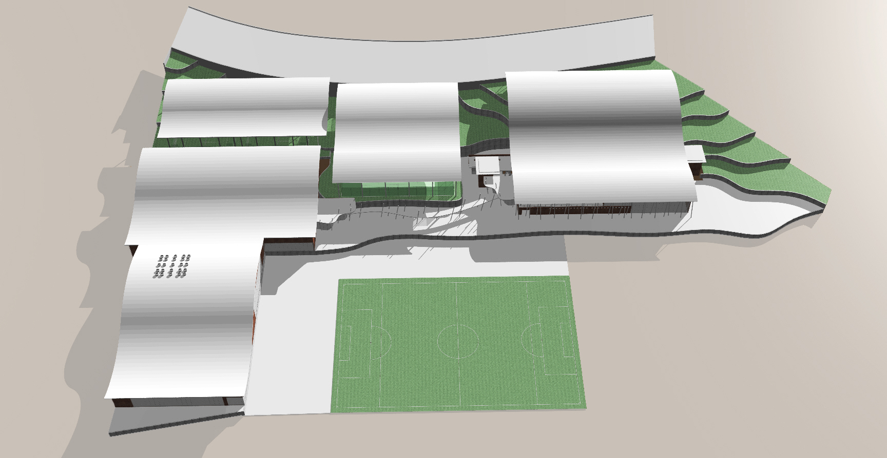 – Frontón cubierto 50 m con pista polideportiva, gradas fijas, gradas retráctiles, vestuarios, vestuarios de personal y aseos