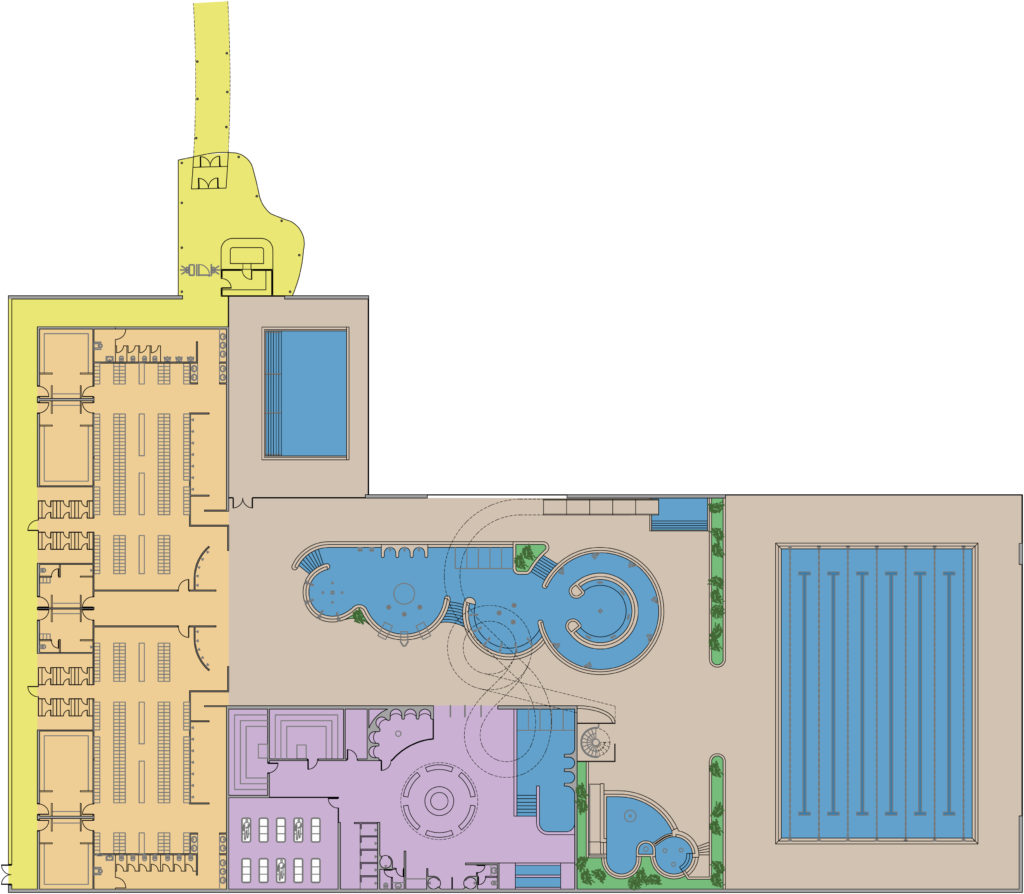 – Piscina cubierta compuesta de vaso de natación y recreativo, vaso de enseñanza y vaso de chapoteo