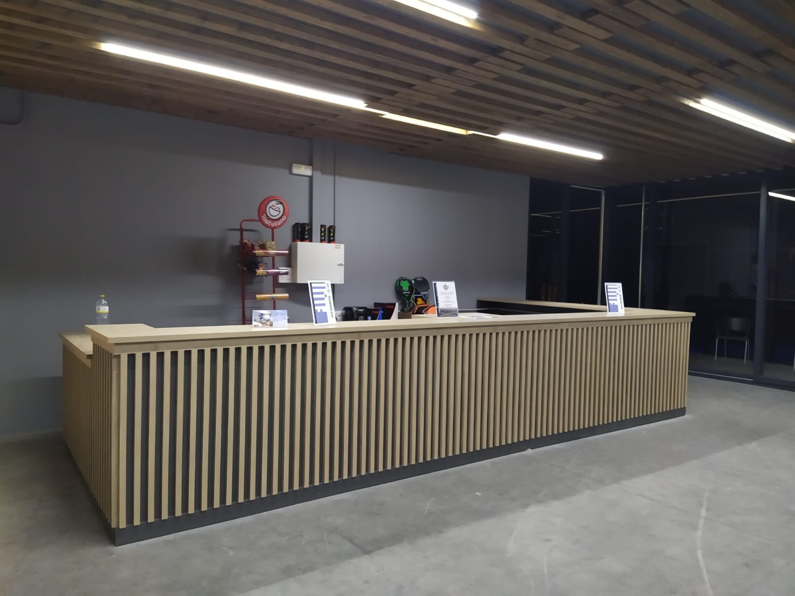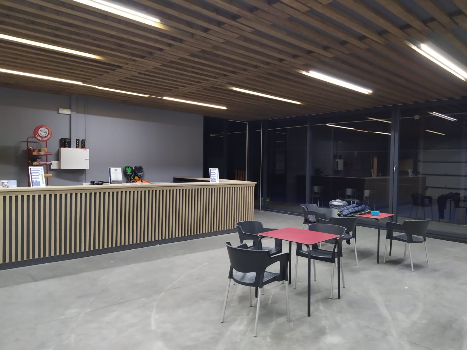 La cafetería está separada de las pistas por una mampara transparente para poder ver los partidos que se jueguen.